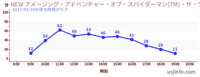 • NEW アメージング・アドベンチャー・オブ・スパイダーマン(TM)・ザ・ライド 4K3D$B$N(B2017年05月26日の待ち時間