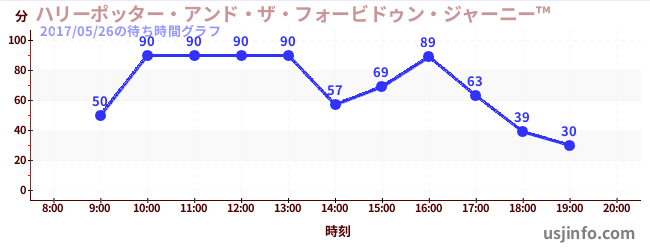 • ハリーポッター・アンド・ザ・フォービドゥン・ジャーニー™$B$N(B2017年05月26日の待ち時間