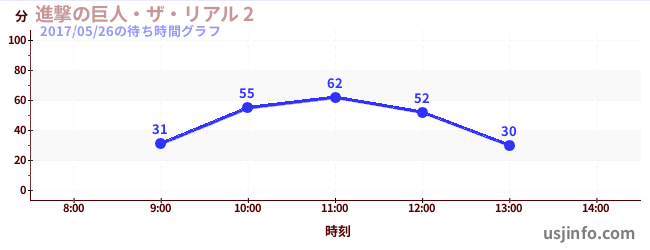 • 進撃の巨人・ザ・リアル 2$B$N(B2017年05月26日の待ち時間