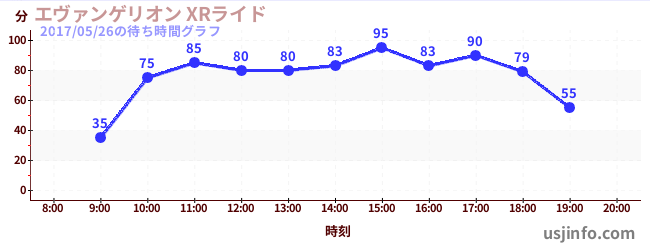 • エヴァンゲリオン XRライド$B$N(B2017年05月26日の待ち時間