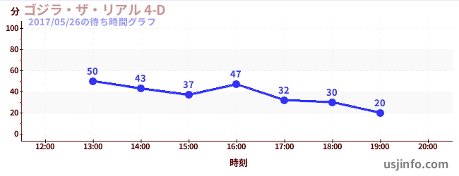 • ゴジラ・ザ・リアル 4-D$B$N(B2017年05月26日の待ち時間