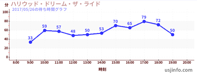 • ハリウッド・ドリーム・ザ・ライド$B$N(B2017年05月26日の待ち時間