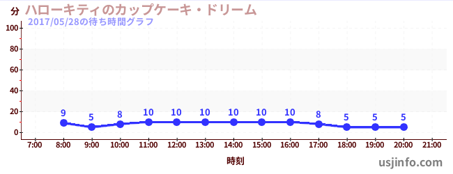 • ハローキティのカップケーキ・ドリーム$B$N(B2017年05月28日の待ち時間
