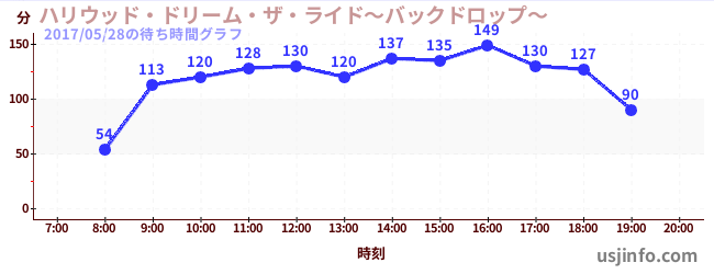 • ハリウッド・ドリーム・ザ・ライド〜バックドロップ〜$B$N(B2017年05月28日の待ち時間