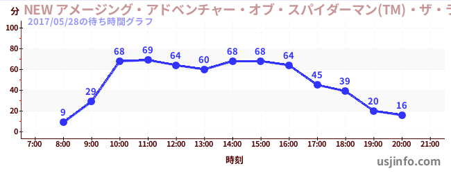 • NEW アメージング・アドベンチャー・オブ・スパイダーマン(TM)・ザ・ライド 4K3D$B$N(B2017年05月28日の待ち時間