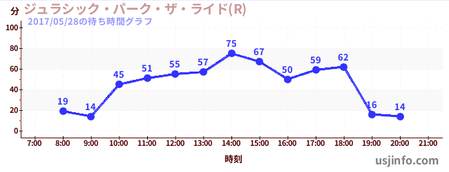 • ジュラシック・パーク・ザ・ライド(R)$B$N(B2017年05月28日の待ち時間