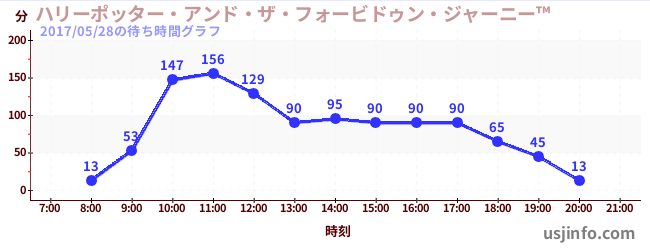 • ハリーポッター・アンド・ザ・フォービドゥン・ジャーニー™$B$N(B2017年05月28日の待ち時間