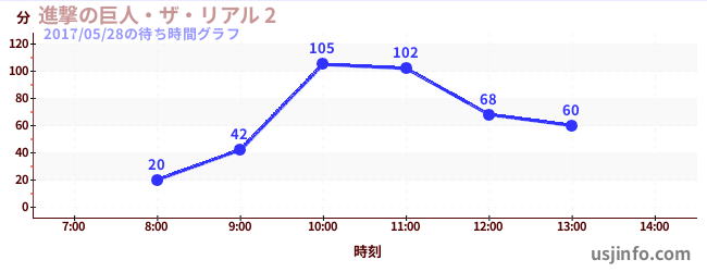 • 進撃の巨人・ザ・リアル 2$B$N(B2017年05月28日の待ち時間