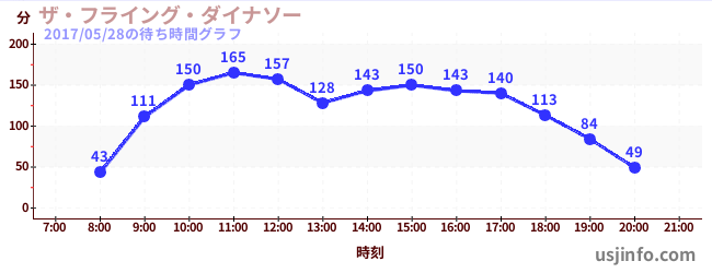 • ザ・フライング・ダイナソー$B$N(B2017年05月28日の待ち時間