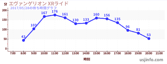 • エヴァンゲリオン XRライド$B$N(B2017年05月28日の待ち時間