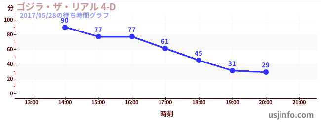 • ゴジラ・ザ・リアル 4-D$B$N(B2017年05月28日の待ち時間