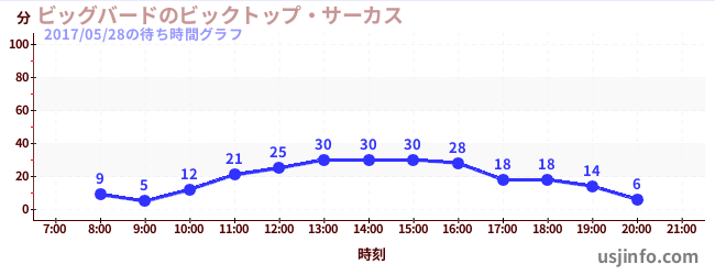 • ビッグバードのビックトップ・サーカス$B$N(B2017年05月28日の待ち時間