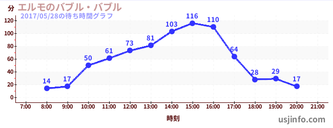 • エルモのバブル・バブル$B$N(B2017年05月28日の待ち時間