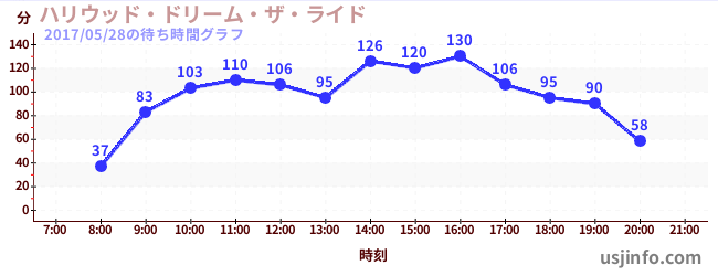 • ハリウッド・ドリーム・ザ・ライド$B$N(B2017年05月28日の待ち時間