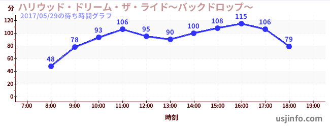 • ハリウッド・ドリーム・ザ・ライド〜バックドロップ〜$B$N(B2017年05月29日の待ち時間