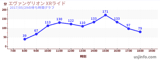 • エヴァンゲリオン XRライド$B$N(B2017年05月29日の待ち時間