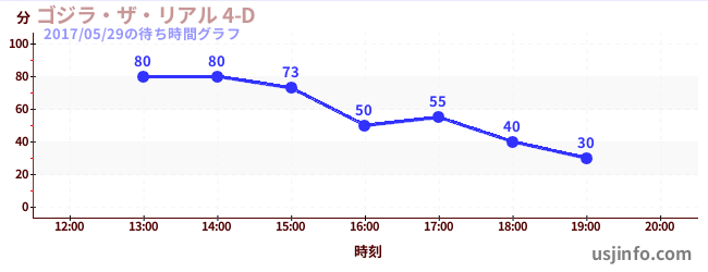 • ゴジラ・ザ・リアル 4-D$B$N(B2017年05月29日の待ち時間