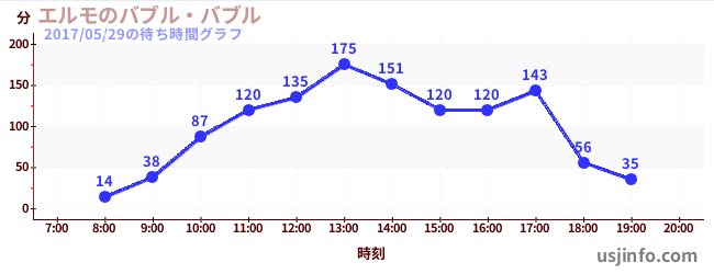 • エルモのバブル・バブル$B$N(B2017年05月29日の待ち時間