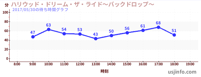• ハリウッド・ドリーム・ザ・ライド〜バックドロップ〜$B$N(B2017年05月30日の待ち時間