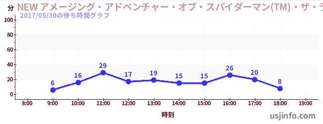 • NEW アメージング・アドベンチャー・オブ・スパイダーマン(TM)・ザ・ライド 4K3D$B$N(B2017年05月30日の待ち時間