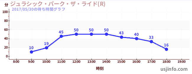 • ジュラシック・パーク・ザ・ライド(R)$B$N(B2017年05月30日の待ち時間