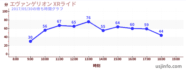 • エヴァンゲリオン XRライド$B$N(B2017年05月30日の待ち時間