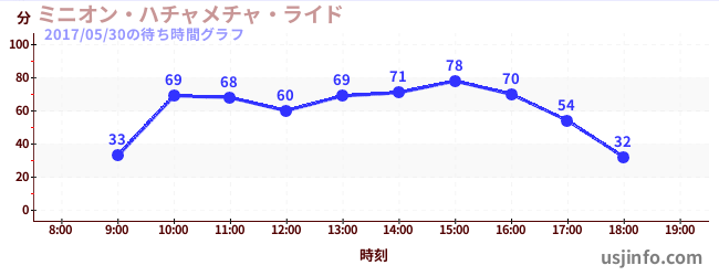 • ミニオン・ハチャメチャ・ライド$B$N(B2017年05月30日の待ち時間