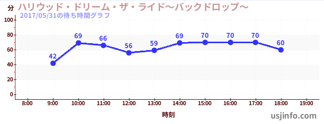 • ハリウッド・ドリーム・ザ・ライド〜バックドロップ〜$B$N(B2017年05月31日の待ち時間