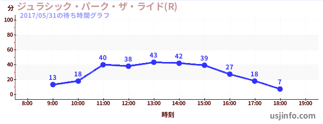 • ジュラシック・パーク・ザ・ライド(R)$B$N(B2017年05月31日の待ち時間