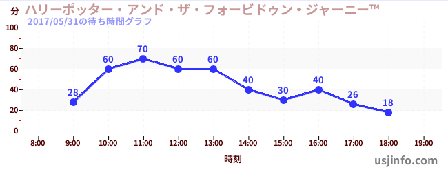 • ハリーポッター・アンド・ザ・フォービドゥン・ジャーニー™$B$N(B2017年05月31日の待ち時間
