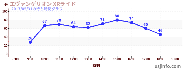 • エヴァンゲリオン XRライド$B$N(B2017年05月31日の待ち時間