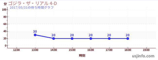 • ゴジラ・ザ・リアル 4-D$B$N(B2017年05月31日の待ち時間