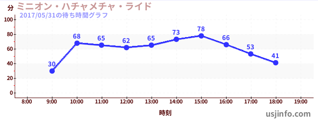 • ミニオン・ハチャメチャ・ライド$B$N(B2017年05月31日の待ち時間