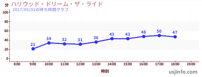 • ハリウッド・ドリーム・ザ・ライド$B$N(B2017年05月31日の待ち時間