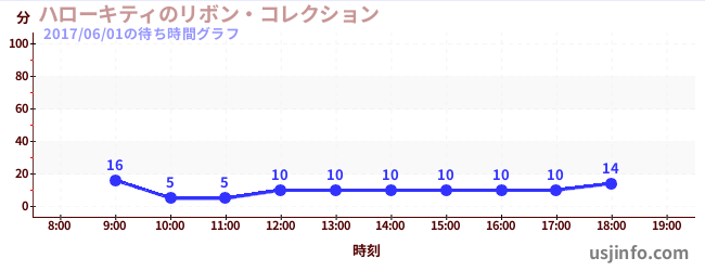 • ハローキティのリボン・コレクション$B$N(B2017年06月01日の待ち時間