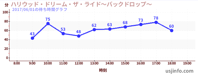 • ハリウッド・ドリーム・ザ・ライド〜バックドロップ〜$B$N(B2017年06月01日の待ち時間