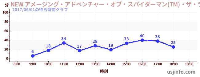 • NEW アメージング・アドベンチャー・オブ・スパイダーマン(TM)・ザ・ライド 4K3D$B$N(B2017年06月01日の待ち時間