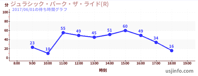 • ジュラシック・パーク・ザ・ライド(R)$B$N(B2017年06月01日の待ち時間