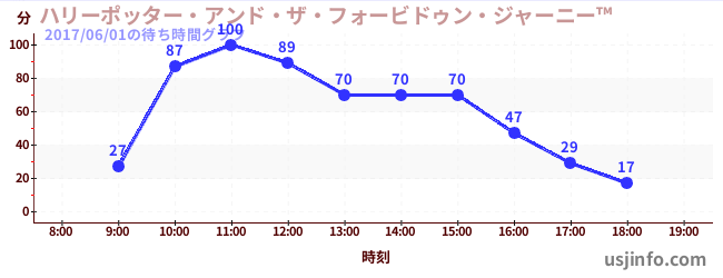 • ハリーポッター・アンド・ザ・フォービドゥン・ジャーニー™$B$N(B2017年06月01日の待ち時間