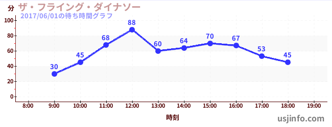 • ザ・フライング・ダイナソー$B$N(B2017年06月01日の待ち時間