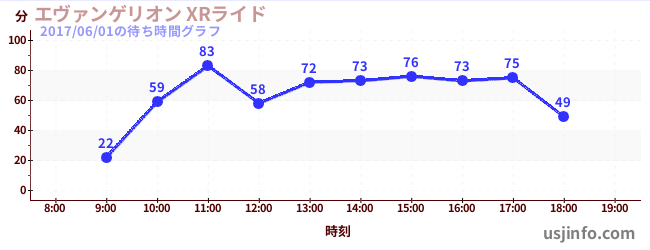 • エヴァンゲリオン XRライド$B$N(B2017年06月01日の待ち時間