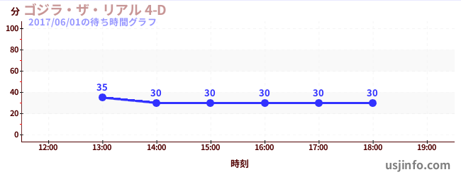 • ゴジラ・ザ・リアル 4-D$B$N(B2017年06月01日の待ち時間