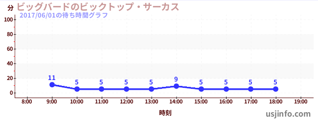 • ビッグバードのビックトップ・サーカス$B$N(B2017年06月01日の待ち時間
