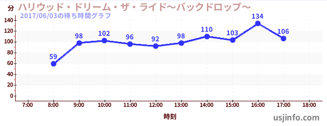 • ハリウッド・ドリーム・ザ・ライド〜バックドロップ〜$B$N(B2017年06月03日の待ち時間