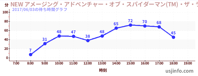 • NEW アメージング・アドベンチャー・オブ・スパイダーマン(TM)・ザ・ライド 4K3D$B$N(B2017年06月03日の待ち時間