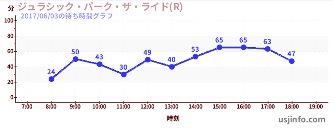 • ジュラシック・パーク・ザ・ライド(R)$B$N(B2017年06月03日の待ち時間