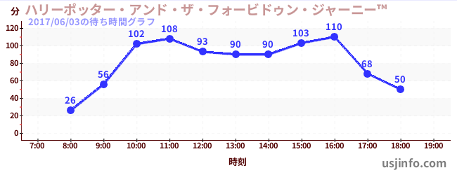 • ハリーポッター・アンド・ザ・フォービドゥン・ジャーニー™$B$N(B2017年06月03日の待ち時間
