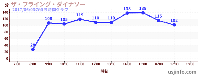 • ザ・フライング・ダイナソー$B$N(B2017年06月03日の待ち時間
