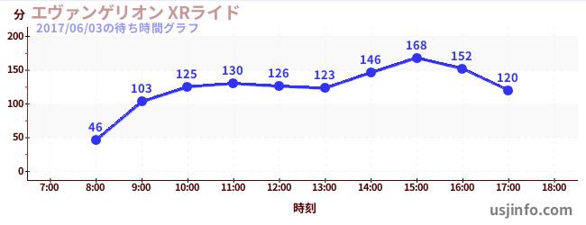 • エヴァンゲリオン XRライド$B$N(B2017年06月03日の待ち時間