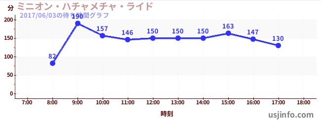 • ミニオン・ハチャメチャ・ライド$B$N(B2017年06月03日の待ち時間